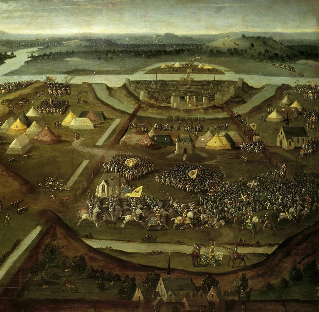 La mañana del lunes día 6 supuso otro golpe de suerte para los imperiales, pues el Tíber amaneció cubierto por una espesa niebla, lo que dificultaba la visibilidad a las defensas papales. Los escopeteros estaban situados sobre los muros del castillo de Sant’ Angelo al mando de Benvenuto Cellini, el célebre escultor, que sería uno de los protagonistas indiscutibles del histórico episodio.