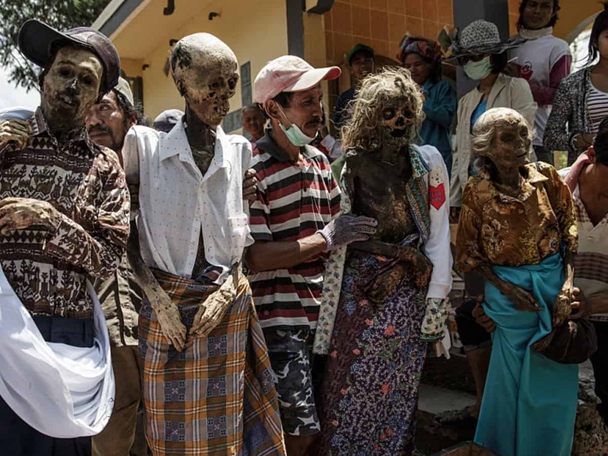 Quienes llevan hasta el extremo la práctica de honrar a sus muertos son los Toraja, una tribu de las islas Célebes, en Indonesia, que en la Ceremonia de Limpieza de los Cadáveres o Ma’Nene, celebrada en el mes de agosto, desentierran a sus difuntos, los lavan y los visten con ropa limpia para después fotografiarse con ellos. Aunque sacrilegio es lo primero que se nos viene a la mente, lo cierto es que para los Toraja exhumar a sus antepasados es una muestra de respeto hacia ellos.