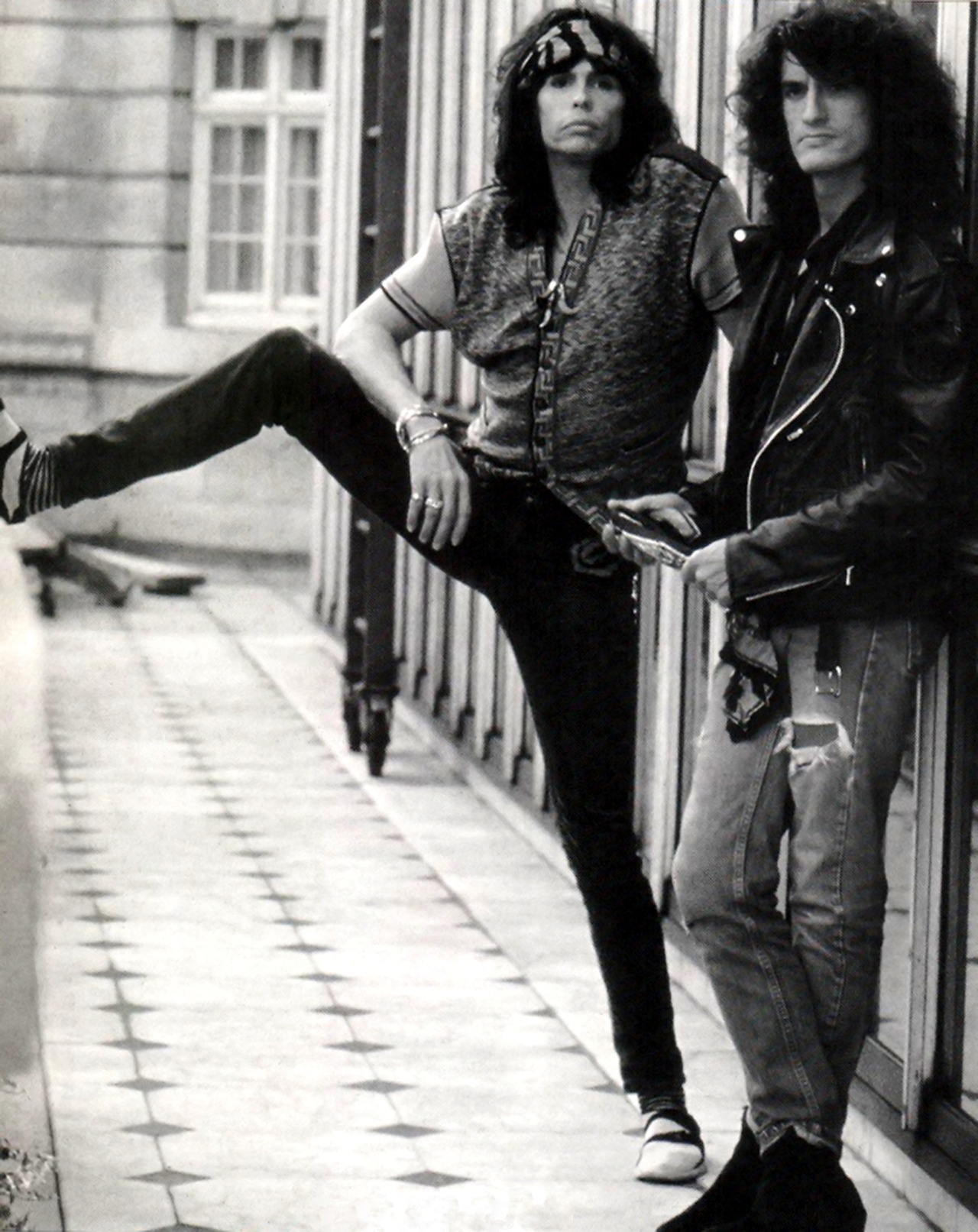 El esperpento llegó al punto de que sobre el escenario Joe y Perry se pinchaban por las drogas que supuestamente el guitarrista llevaba escondidas (con las que incitaba al cantante y que por supuesto no quería compartir). Dos yonquis (con talento, eso sí) en lucha patética por una dosis. El paroxismo lo alcanzaron cuando Joe golpeó a Steven en el rostro con su guitarra, cortándole los gruesos labios con las cuerdas; la respuesta del espigado cantante fue escupirle la sangre a su «gemelo».