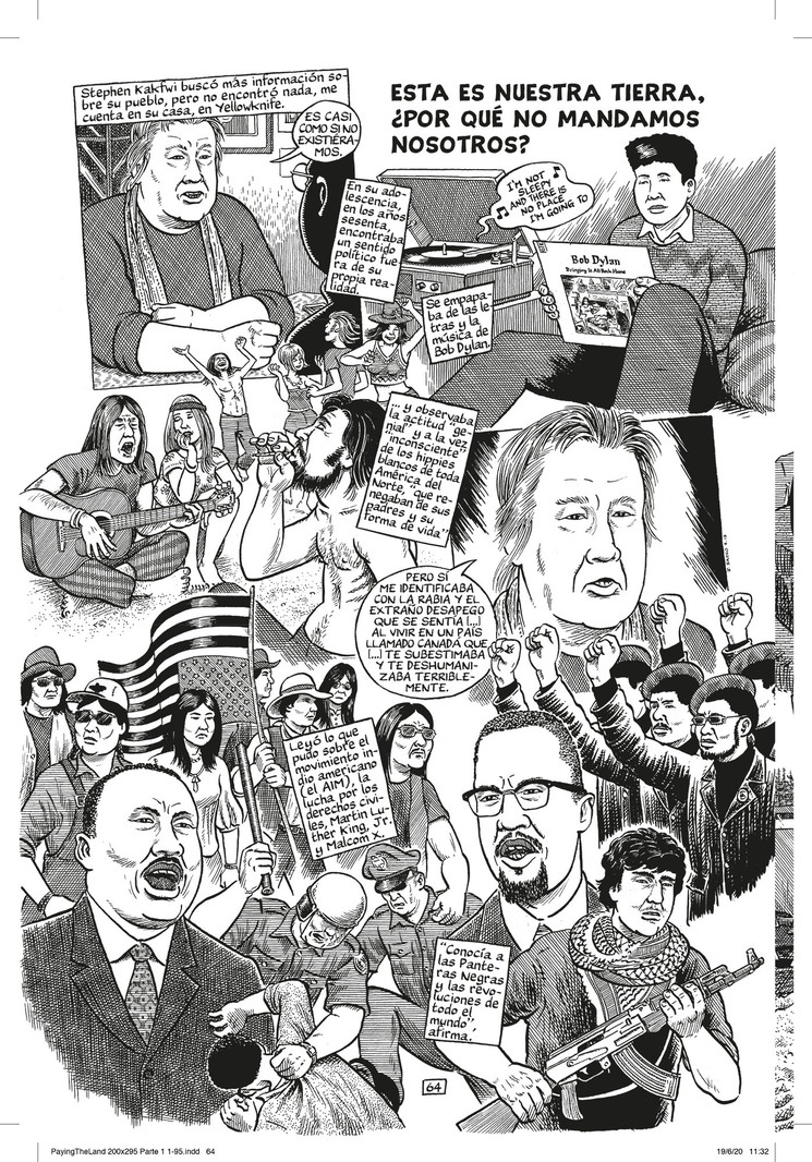 Ahora aquel periodista tiene 60 años y su obra, más sosegada (quizá por madura), no deja de mover conciencias, como lo hicieron en su momento otras novelas gráficas como Maus o Persépolis. Y con 2021 ha llegado su nuevo trabajo: Paying the land, un libro con otro de los grandes problemas de nuestro tiempo: el cambio climático. En castellano ha sido recientemente publicado por Reservoir Books en una magnífica edición en tapa dura bajo el título de Un tributo a la tierra, y Sacco ha escogido como trasfondo para su novela gráfica la extracción de recursos naturales en Canadá y cómo afecta eso a la población autóctona.