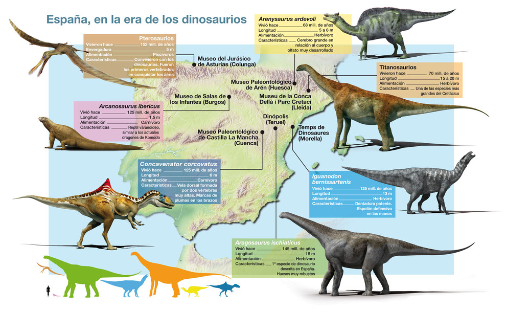 Una amplia zona que hoy iría desde Cuenca hasta Asturias fue un auténtico vergel preñado de bosques, ríos y lagos que impulsó la aparición de especies de dinosaurios (y muchas otras, como aves, mamíferos, insectos y reptiles); una riqueza natural que haría que fuese la más rica en yacimientos fósiles de grandes animales como los legendarios «lagartos antediluvianos» del pasado. Es la razón por la que en nuestra piel de toro existen hasta 16 museos y rutas para descubrir la presencia de dinosaurios en España.