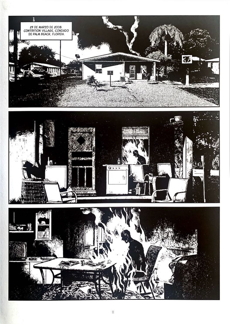 Con un pulso narrativo envidiable, trazos en blanco y negro (con un fuerte predominio del tono oscuro y las sombras) que encajan a la perfección con la naturaleza de lo narrado, en Contrition, con este incómodo marco narrativo como escenario, comenzará una historia de venganza y redención, un thriller lleno de giros (Portela demuestra ser un maestro en este punto) que no decae ni un segundo hasta su –inesperado– desenlace.