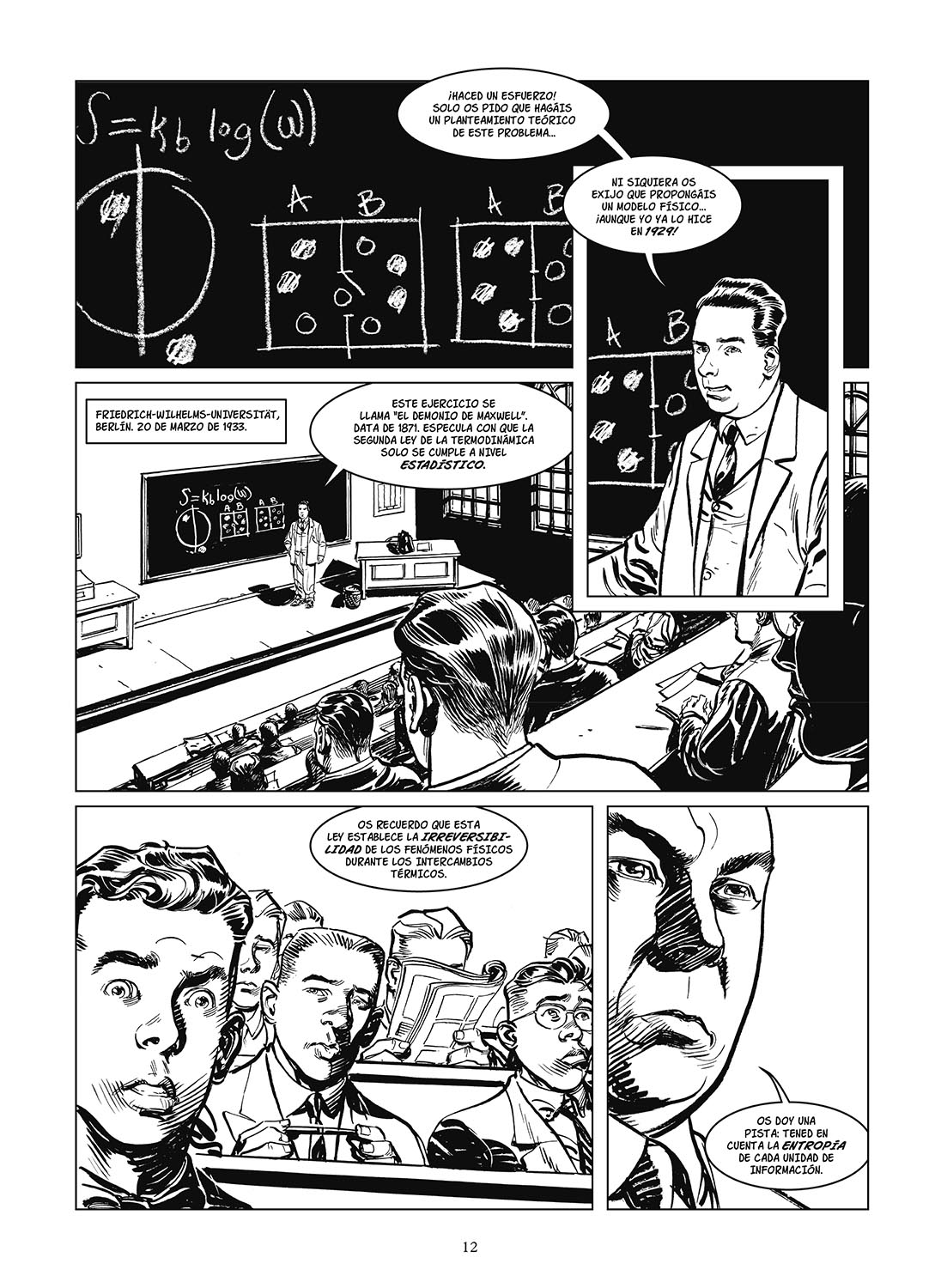 En los trazos en blanco y negro (que lo dotan de mayor sobriedad, y cierta coherencia acorde con aquellos tiempos en que los informativos que abrían las largas sesiones de cine también eran en escala de grises, como nuestro patrio NO-DO, que emitió desde 1942, en plena guerra mundial, hasta 1981) se materializan las inquietudes de físicos y premios Nobel como el italiano Enrico Fermi (que, seguido de cerca por las autoridades fascistas, decidirá exiliarse en Estados Unidos, contribuyendo al avance atómico norteamericano) o el húngaro Leó Szilárd y su amigo alemán, el Premio Nobel Albert Einstein, quienes hubieron de escoger el camino del exilio cuando los nazis llegaron al poder, aventurando la tragedia que se cerniría sobre el pueblo judío pocos años después. Ellos sí lo consiguieron, muchos otros no.