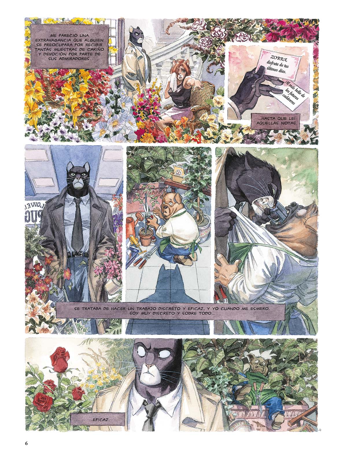Misma elegancia en cada página, igual mimo en el tratamiento del dibujo (¡qué maravilla de color!) y los personajes y el guion dignos del mejor creador de thrillers del siglo XX, incluso un Marlowe o un Hammett (a los que sin duda homenajean sus creadores en cada página). ¿Qué más se puede pedir? Para aquellos que no se hayan sumergido todavía en el rico y adictivo universo de esta serie de la viñeta (pocos, seguro, entre los amantes del noveno arte), Norma Editorial también dispone de un maravilloso volumen integral de Blacksad que integra los cinco primeros títulos previos a Todo Cae. Una joya gráfica que sin duda merece la pena.