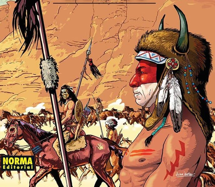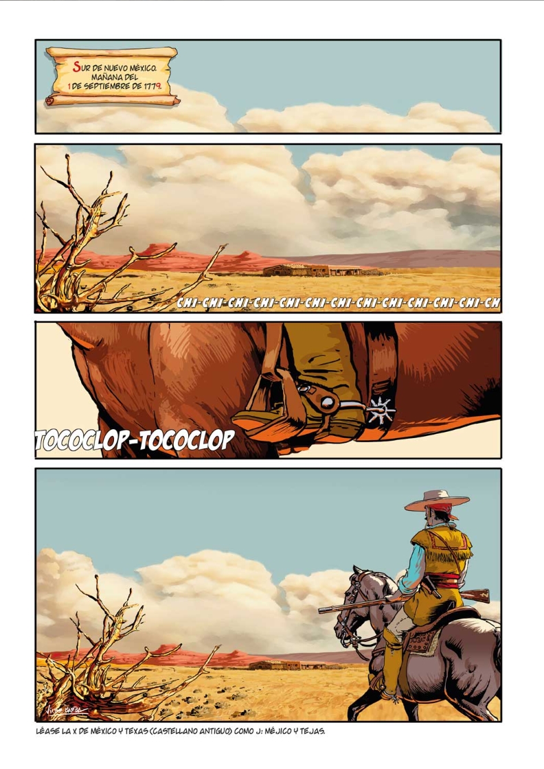 El veterano historietista Víctor Barba, oriundo de Puertollano, Ciudad Real, está detrás de este título fascinante, un western ambientado en la América del virreinato de la Nueva España, un periodo convulso y poco conocido de la historiografía hispánica que narra una parte importante del pasado de lo que después serían los Estados Unidos de América y el México actual. La historia comienza en 1779 en Nuevo México: los comanches de Cuerno Verde están en pie de guerra, asolando la frontera. Mientras tanto, desde el virreinato se prepara una expedición para pacificar el territorio. Ajeno a este inminente enfrentamiento, el excapitán Rodrigo de Castro, con una patrulla de escasos aunque rudos hombres, se adentrará en el desierto para emprender una misión de rescate. Una misión que no dará tregua al lector hasta la última página.