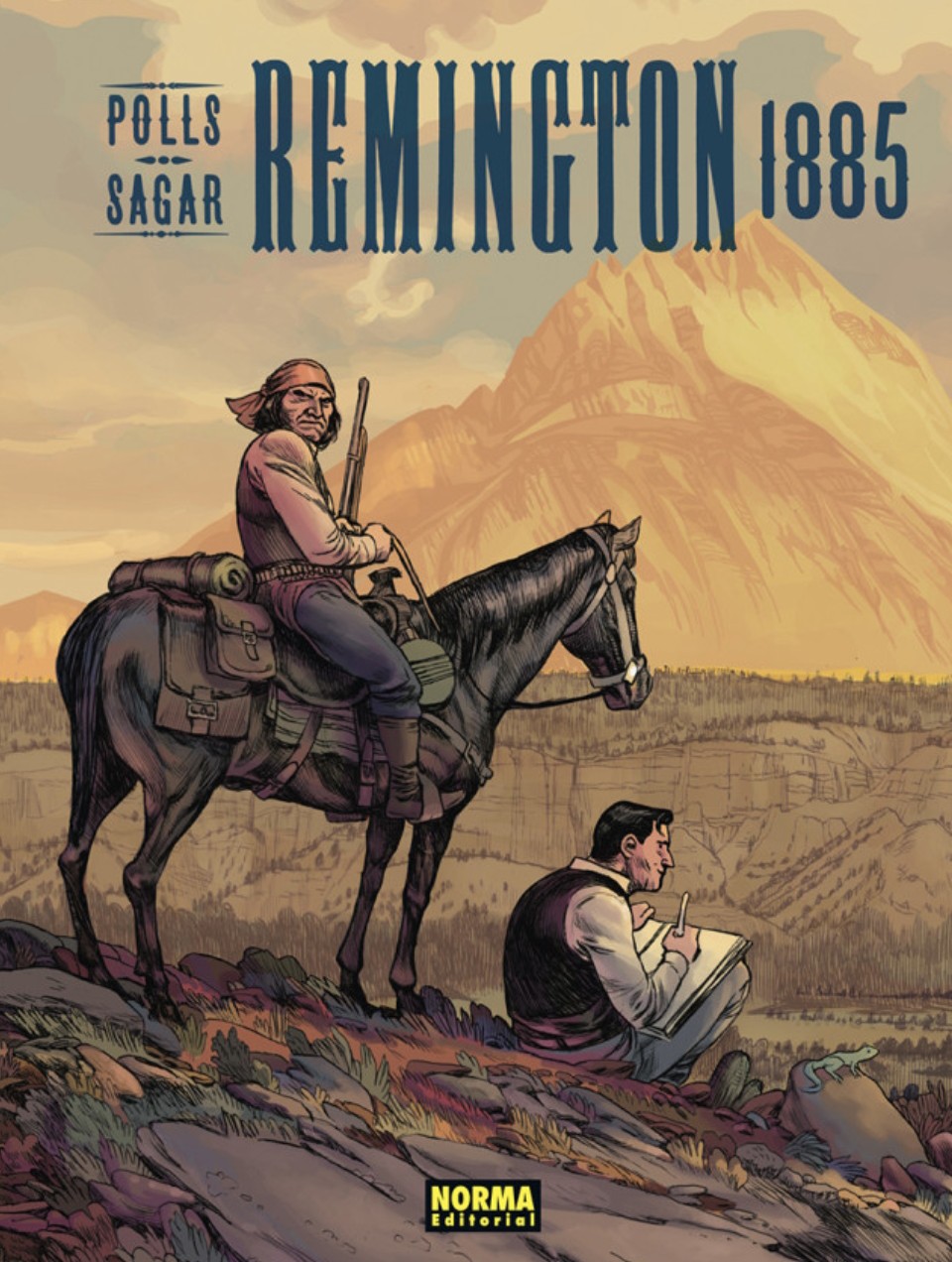 Tras la creación de este vibrante título está el guionista Josep María Polls, que tiene en su haber, entre otros, Los años Galácticos, también publicado por Norma Editorial, y el dibujante zaragozano Sagar, autor de Viaje alrededor de mi habitación y Miles en París, ambos publicados igualmente por Norma, quienes, con un más que demostrado talento, imaginan el encuentro entre dos figuras decisivas para la leyenda del lejano Oeste. En 1885, el joven ilustrador Frederic Remington visita la reserva india de San Carlos, en Arizona, con la esperanza de vender sus dibujos a la revista Harper’s Weekly. Su viaje coincidirá con la última gran revuelta apache liderada por el poderoso caudillo Gerónimo. Los camino del joven ilustrador (que ofrecerá variadas descripciones de la vida en el Oeste de los Estados Unidos y que será corresponsal de guerra e ilustrador en la Guerra hispano-estadounidense en 1898 para el magnate William Randolph Hearst) y del veterano guerrero nativo se cruzarán en una historia vertiginosa que marcará el ascenso del artista y el ocaso del líder apache.