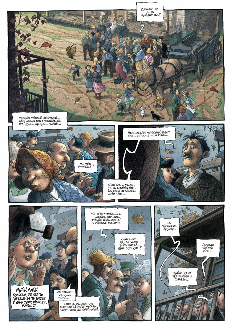 …que podríamos ser cualquiera de nosotros. La historia comienza con la tragedia de la joven Marie, que se queda viuda sin hijos –un golpe duro en cualquier tiempo y lugar, más en una comunidad rural cien años ha–, y que más allá de su dolor, que se guarda para sus adentros, se siente completamente constreñida y aprisionada por sus responsabilidades para con la comunidad: es la persona que regenta el almacén que aprovisiona a todo el pueblo, desde los alimentos básicos hasta las herramientas y maquinaria agrícolas a los materiales necesarios para reformas y construcción.