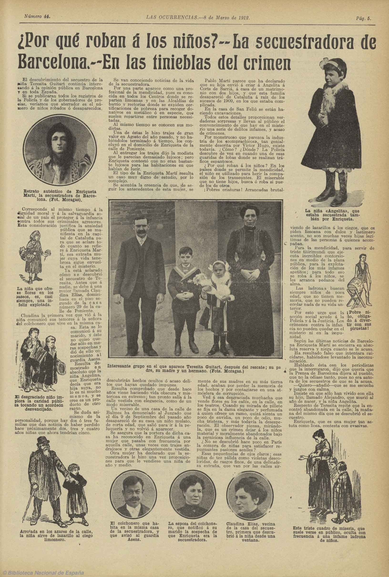 Corominas afirma que entonces el relato oral, la tradición oral, tenían mucha fuerza, en una sociedad en gran parte analfabeta y en la que los periódicos estaban destinados a un público muy selecto, generalmente de la clase alta. Enriqueta se convirtió en un mito, no obstante, gracias al enorme eco que tenía la prensa, lo que según el autor se explica también por la gran cantidad de casos que había en la época de maltrato infantil y secuestro de niños, no solo en Barcelona o Cataluña sino en toda España. Pero además, tras un hecho socialmente muy tumultuoso como fue la Semana Trágica, los ánimos estaban a flor de piel.