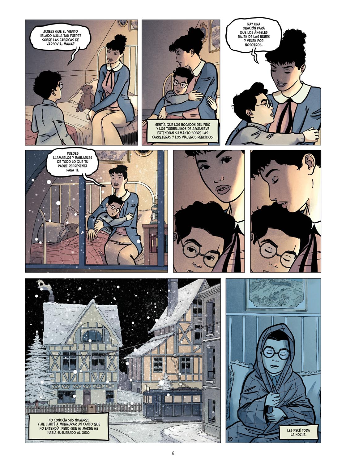 Sin duda, es portentoso el epílogo, casi otra novela gráfica donde el color, como la vida misma, cobra vida y luminosidad, y que, ya en la posguerra, muestra la pasividad de las autoridades de la Alemania occidental para con los antiguos oficiales nazis que ocuparon cargos en la administración (no tan) democrática y devuelve a los descendientes de los judíos primero de los guetos y más tarde de los campos de exterminio la capacidad de ser libres (libres de verdad, no a través del trabajo, como rezaba la eufemística y terrible frase en alemán que daba la bienvenida a los «sin nombre» en la verja de Auschwitz, «Arbeit macht frei») mirando para ello cara a cara al enemigo, enfrentándose con el pasado y haciendo justicia en el presente, honrando así como merece la memoria de los que se marcharon para no volver jamás; pues no hay más injusticia que mirar para otro lado. Quizá los ángeles guían a esos descendientes… Quién sabe.