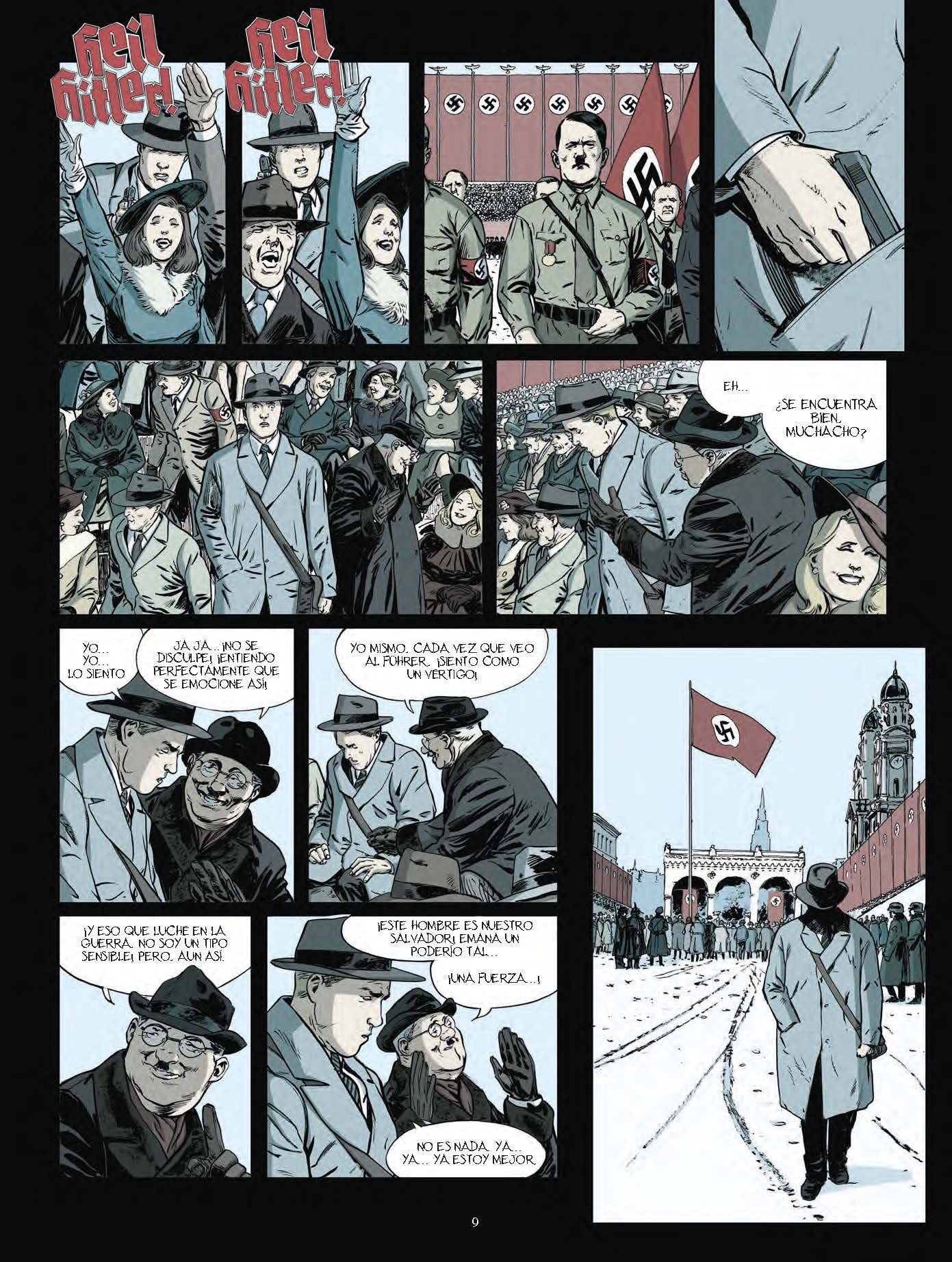 Es obra del periodista y guionista parisiense Pat Perna con ilustraciones de François Ruizgé. Con un dibujo realista y una ambientación soberbia (a pesar de que combina historia real con personajes ficticios, lo que en este caso es un acierto), la historia comienza en plena Guerra Fría, en medio de un Berlín dividido, cuando el periodista Guntram Muller se interesa por el juicio de Maurice Bavaud, ejecutado como hemos visto en el post en 1941 acusado de conspiración por los nazis. El periodista se pregunta: ¿Era un loco, un asesino solitario? ¿Un espía de una organización secreta? ¿Recibía órdenes de los aliados o por el contrario de algún allegado del mismo Hitler? ¿Cómo pudo acercarse tanto al líder del NSDAP en plena efervescencia de su poder?